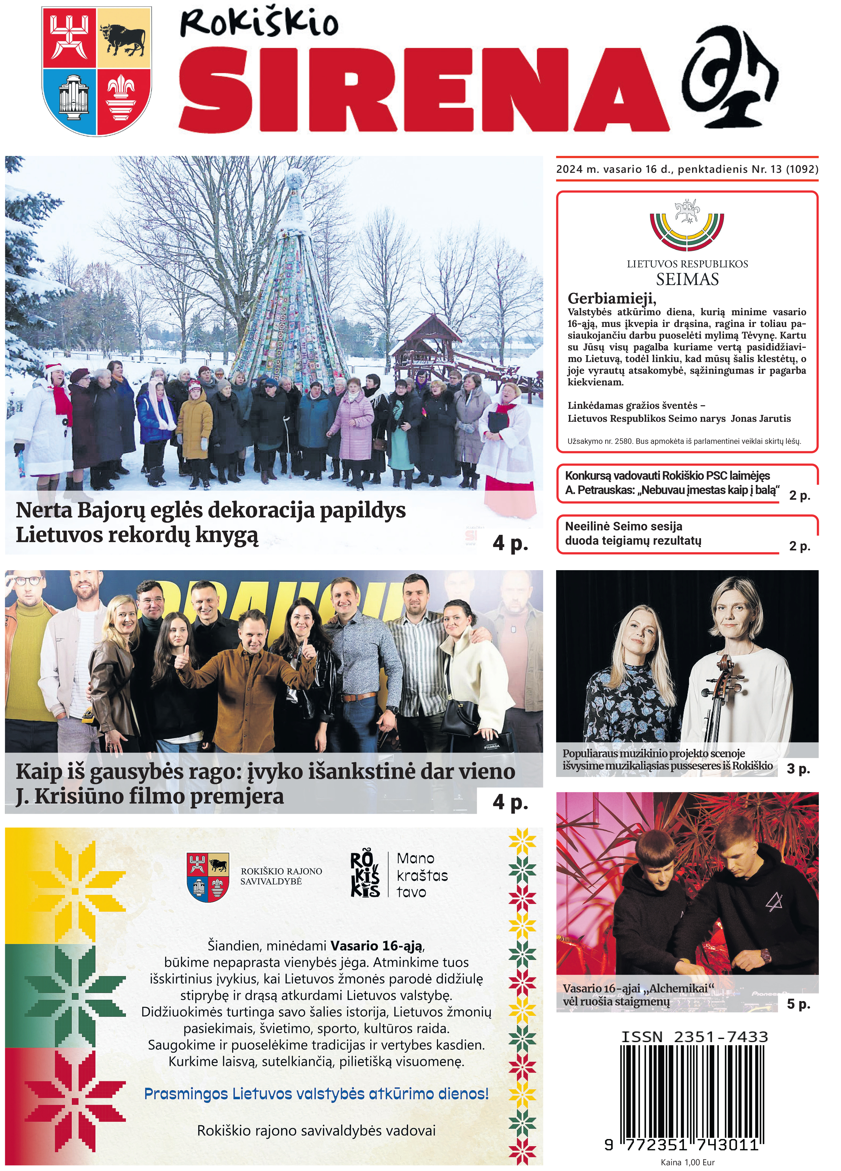 Penktadienio, vasario 16-osios „Rokiškio Sirena“ numeris jau paruoštas!