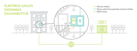 Norint keisti elektros įvado galią daugiabutyje name kviečiame prisijungti prie ESO savitarnos adresu eso.lt/savitarna ir greitai bei patogiai pateikti paraišką. Galios didinimo daugiabutyje atveju susikerta net trys tinklai – buto tinklas, ESO tinklas ir namo administratoriaus tinklas. Pokyčių gali reikėti visuose šiuose tinkluose.