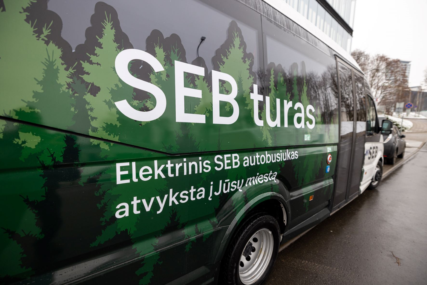 Elektrinį SEB banko autobusiuką Rokiškio gyventojai pastebės nesunkiai: jis pažymėtas SEB banko logotipu ir dekoruotas žalio miško motyvais. Autobusiuką Lietuvoje pagamino bendrovės „Elinta“ ir „Altas Auto“. Regionus toks mobilus skyrius pasieks tvariai ir kartu populiarins keliones elektriniu transportu.