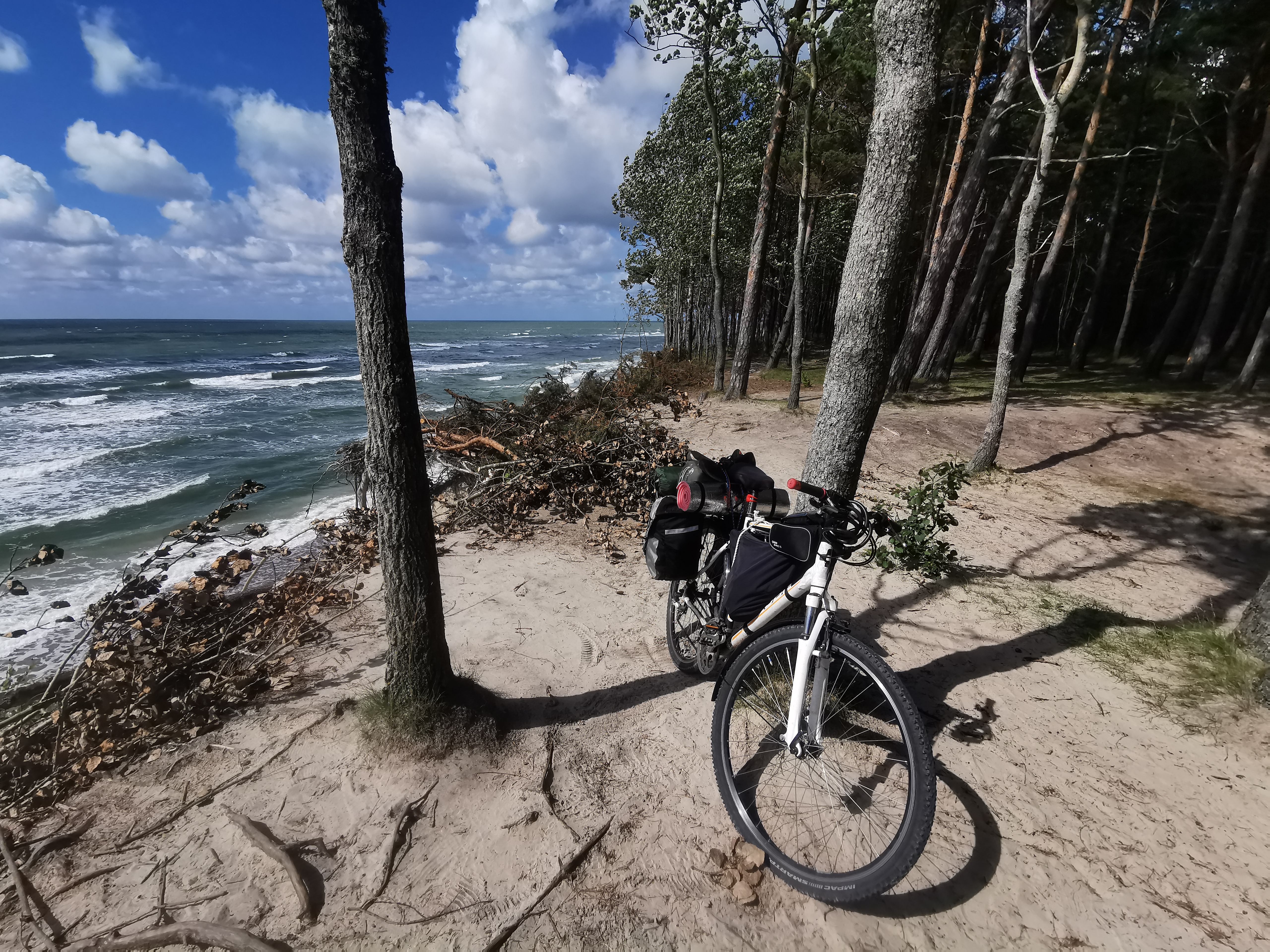 Maršrutas buvo preliminarus, todėl žinojau, kad kažkur teks nusukti į šalį. Taip ir buvo, tačiau pavyko pasiekti tas vietas, kur labiausiai norėjau nuvažiuoti. Pavyzdžiui, per naktį nuo stipraus lietaus permirkus visiems mano daiktams privalėjau ieškoti vietos, kur galėčiau išsidžiovinti daiktus, todėl per „Booking.com“ užsisakiau kambarį Telšiuose, nors ten iš pradžių neplanavau važiuoti. Nuo Telšių taip pat važiavau ne tais keliais, kuriais planavau, tačiau pasiekiau pajūrį, iki kurio labiausiai ir norėjau nuvažiuoti.